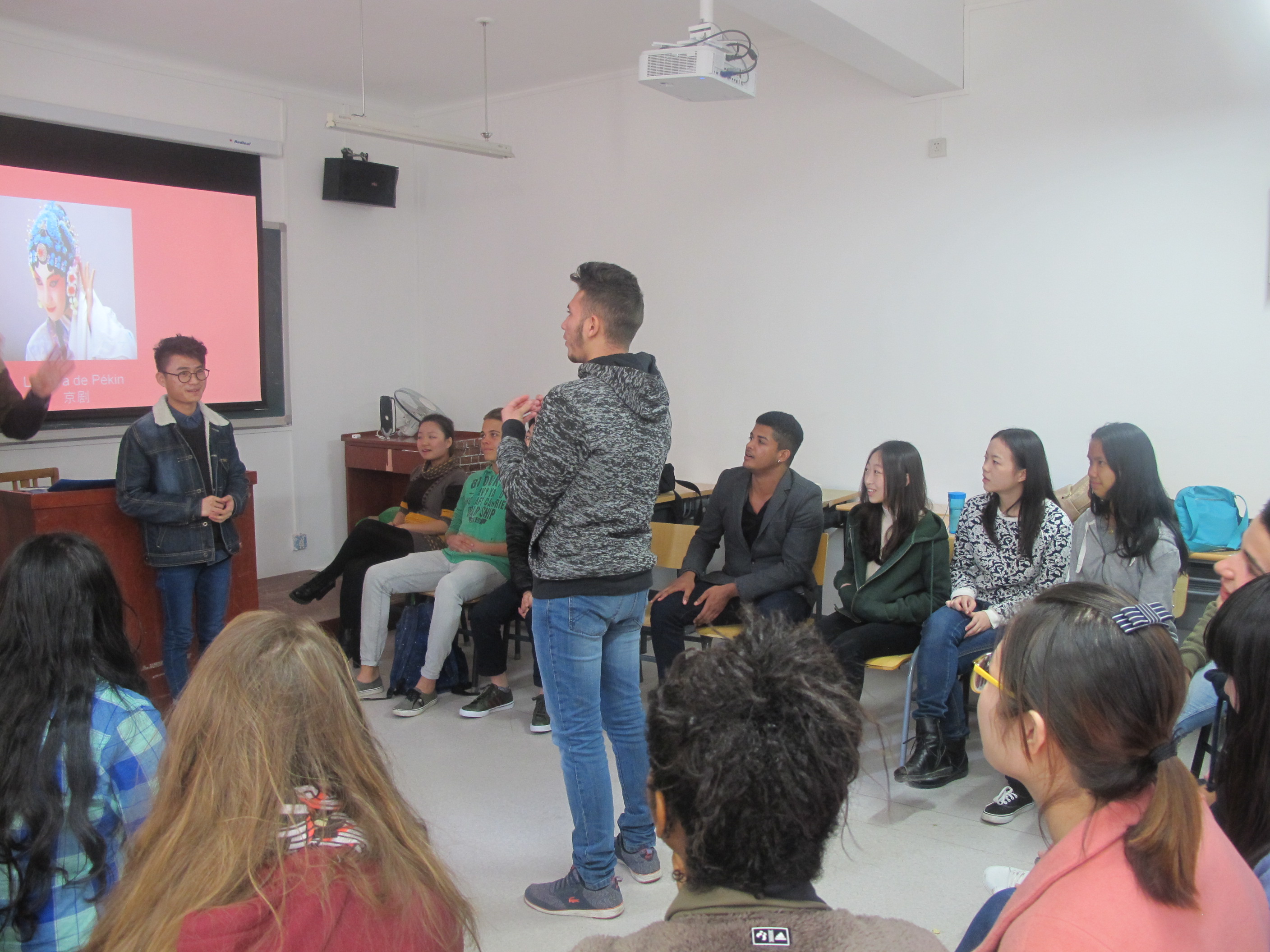 2016年3月13日下午三点,充满欢声笑语的法语角活动在主楼132、133教室举行。辅导员潘丹老师出席本次活动。法语角活动共有19位法国学生参加,他们与法语系学子欢聚一堂,共同度过了有趣而充实的两个小时。