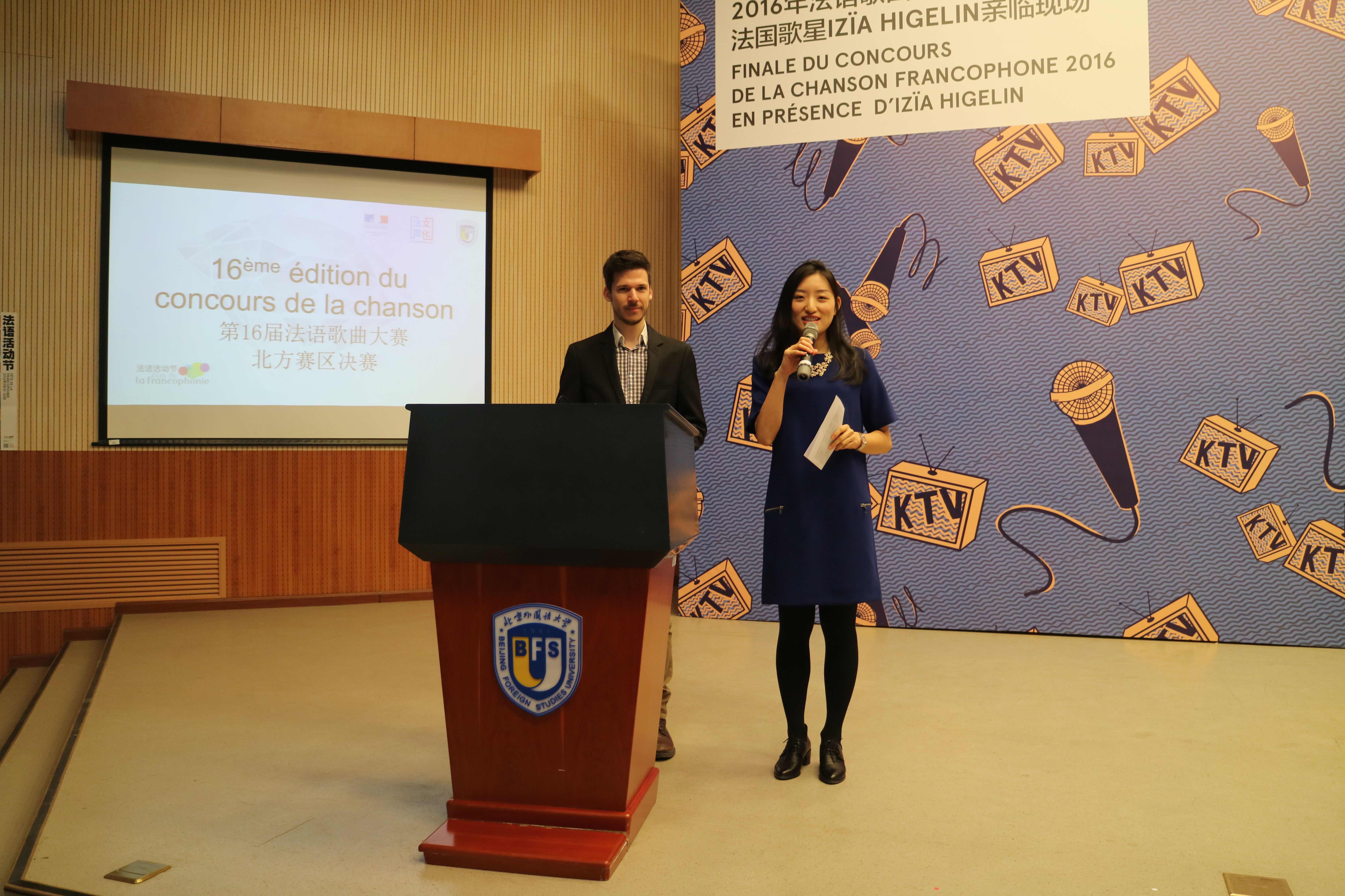 2016年3月27日上午8时30分,法语歌曲大赛(北方赛区)决赛在北京外国语大学阿拉伯语国际楼会议厅隆重举行。此次比赛由法国驻华大使馆和北京外国语大学法语系联合主办,是2016年法语活动节的重要比赛项目,吸引了49名来自北京、天津、河北、河南、山东、陕西、甘肃等不同省份、不同高校的选手参加。