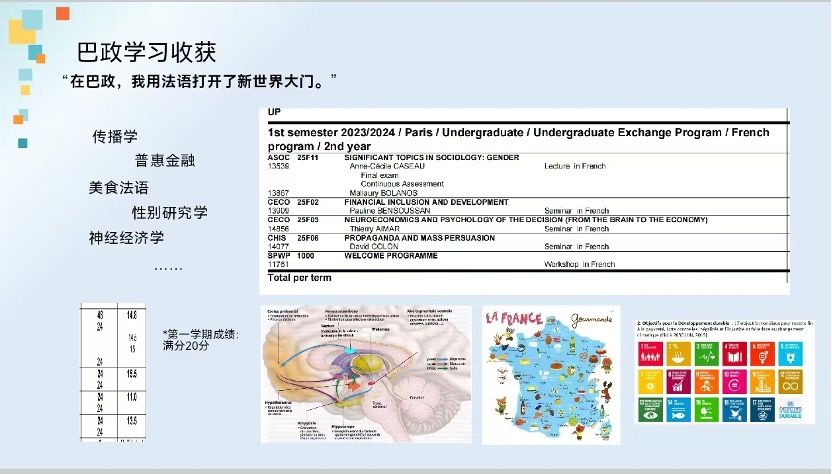 随后,参加过法国交换学习项目的2021级郭芷婧同学,与大家分享了她在法国巴黎政治学院的交换学习经历,以及这段经历对个人各方面能力提升的意义,并鼓励大家积极参与。