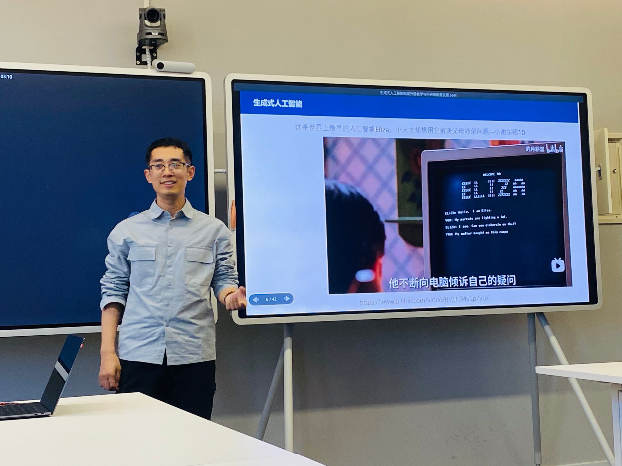 教师们直观感受到人工智能的强大能力。在讲座的后半部分,王琦老师还着重探讨了教师与人工智能的关系。他强调,尽管人工智能技术发展迅速,但教师的角色不可替代。教师应更加关注学生的需求和情感,将人工智能作为辅助工具,而不是完全依赖它。他还深入分析了传统外语教学中存在的问题,如教学方法单一、学习资源有限等,并探讨了生成式人工智能如何赋能外语教学与科研的高质量发展。王琦老师指出,生成式人工智能可以为外语教学提供更加个性化、多样化的学习资源,帮助教师更好地因材施教,提升教学效果。