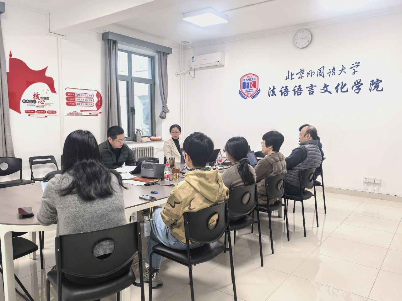 随后,李勇领学了党总支理论学习中心组4月份编印的集体学习材料,包括《中共中央八项规定》《中央八项规定实施细则》《党的十八大以来习近平总书记关于中央八项规定的部分重要论述》《徙木立信焕发新活力 干净干事创造新伟业——写在全党深入贯彻中央八项规定精神学习教育开展之际》《八项规定何以深刻改变中国》《作风建设永远在路上——党史上的作风建设》等,并进行集中研讨。牢牢扭住学院高质量发展这一核心任务,戴冬梅、罗定蓉、王鲲分别结合翻译学科建设、本科培养方案、国际交流合作等作交流发言。