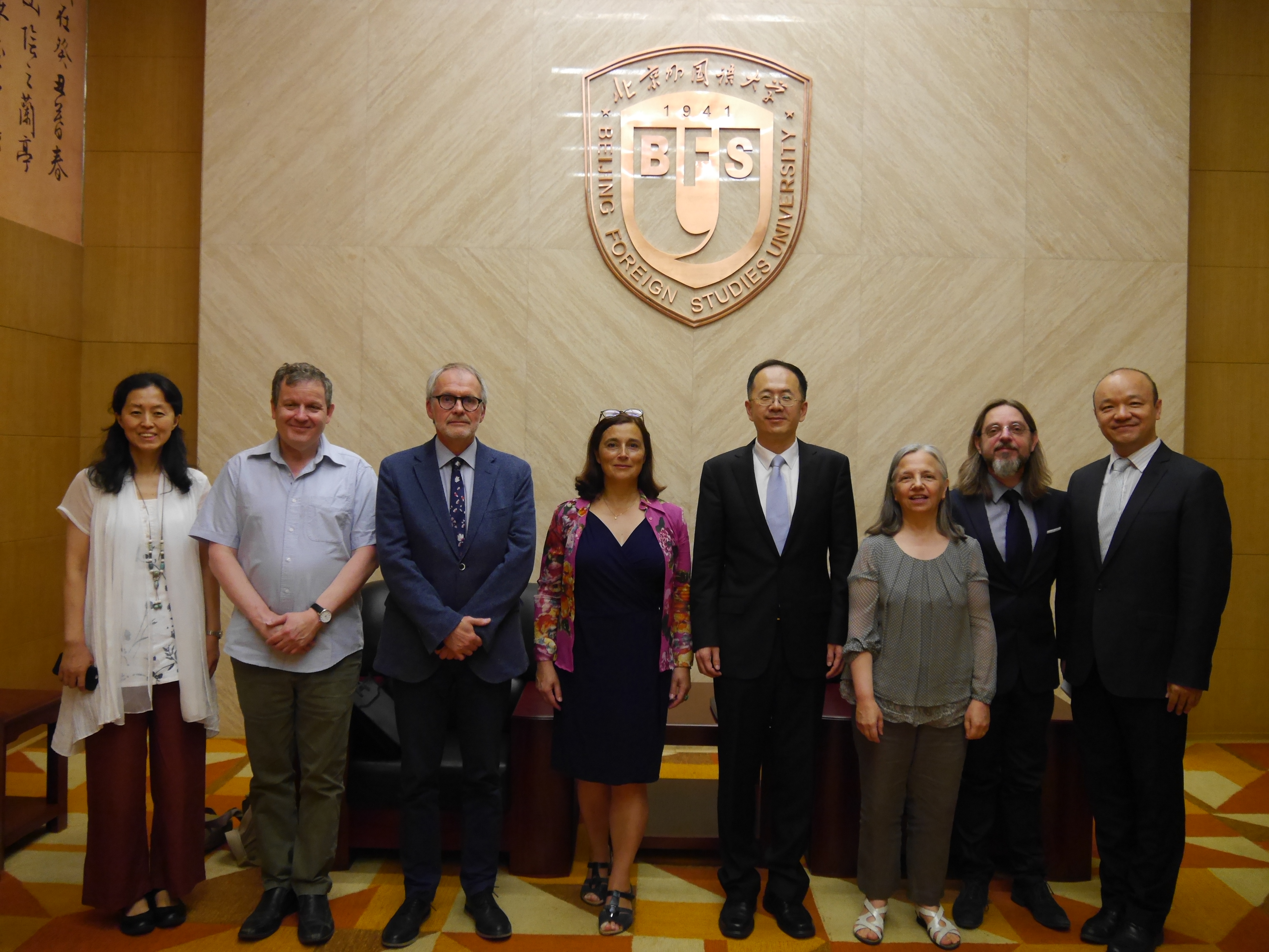 6月14日上午开幕式之前,贾文键副校长热情会见了巴黎第三大学副校长罗丽娜-勒瓦瑟尔女士(Eve-Marie ROLLINAT-LEVASSEUR)、世界法语教师联合会主席德法伊教授(Jean-Marc DEFAYS)、法国国立东方语言文化学院“外语教学法视阈下语言和身份认同的多样性”研究中心(PLIDAM)主任森迪教授(Thomas SZENDE)及法国驻华大使馆文化教育合作副参赞高仁逸先生(Jean-Yves Coquelin)和语言专员裴雅琳女士(Jacqueline Plessis)。贾文键副校长对各位贵宾的到来表示欢迎,并介绍了我校服务国家战略,进行语种开设和学科建设的情况。