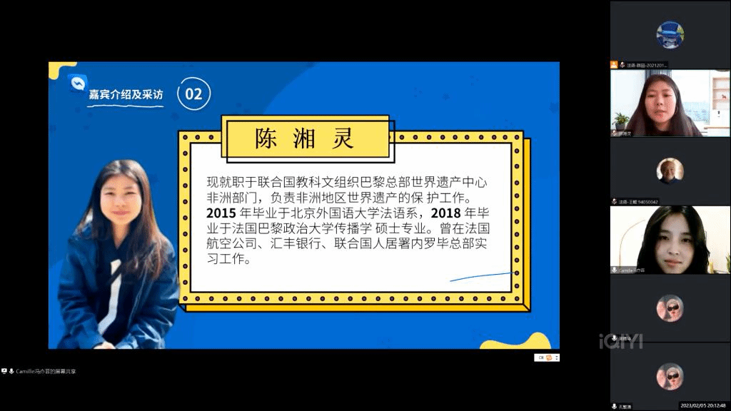 陈湘灵:现就职于联合国教科文组织巴黎总部世界遗产中心非洲部门,负责非洲地区世界遗产的保护工作。2015年毕业于北京外国语大学法语系,2018年毕业于法国巴黎政治大学传播学硕士专业。曾在法国航空公司、汇丰银行、联合国人居署内罗毕总部实习工作。