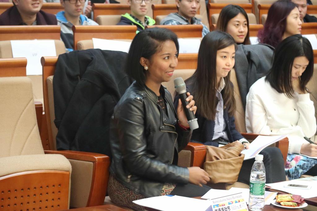陆续登台的选手为我们展现了他们各自的风采。在上半场结束之际,黄晓亮老师和外教Stéphanie Crêteur女士对预赛进行了简短的点评,随后评委们移步到评审间,最终认定选手们的成绩和晋级名单。在结果揭晓之前,法国大使馆工作人员Bossoro先生就比利时恐怖袭击事件致辞,全场以集体默哀一分钟的方式,深切哀悼在恐怖袭击中不幸遇袭的受难者。随后主持人为现场观众公布了晋级选手的名单,他们是:北京外国语大学的孟德慧、北京航空航天大学的张路杨、北京城市学院的周恩、中国传媒大学的薛梦宸、中国民航大学的钱垚宇、石家庄经济学院的刘丹丹、山东大学(威海)的焦成媛、郑州航空工业管理学院的王阳阳、西安交通大学的李金梦,以及西安翻译学院的刘怡。Izïa Higelin女士祝贺选手们成功晋级,并希望大家继续享受音乐的快乐。
