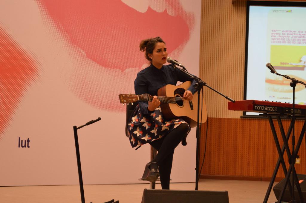 比赛期间,上届法语歌曲大赛冠军、法语系大四刘羽同学为大家献上了美妙的暖场表演。比赛结束后,特邀嘉宾Joyce Jonathan带来了一场简短但温馨的小型演唱会。她自弹自唱了Ça ira、Pas besoin de toi、Sur mes gardes等经典曲目,还以一曲字正腔圆的中国传统民歌《茉莉花》惊艳全场,最后一首Je ne sais pas更是引起了集体大合唱,气氛达到了最高潮。