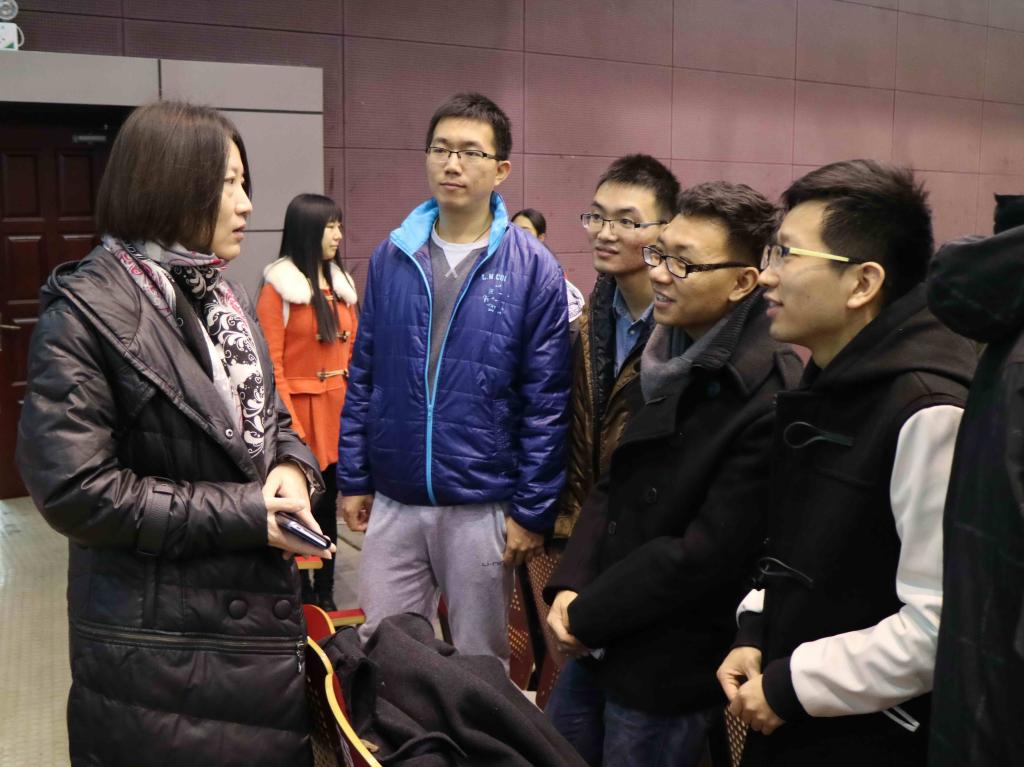 图一 系主任车琳老师在与同学交谈