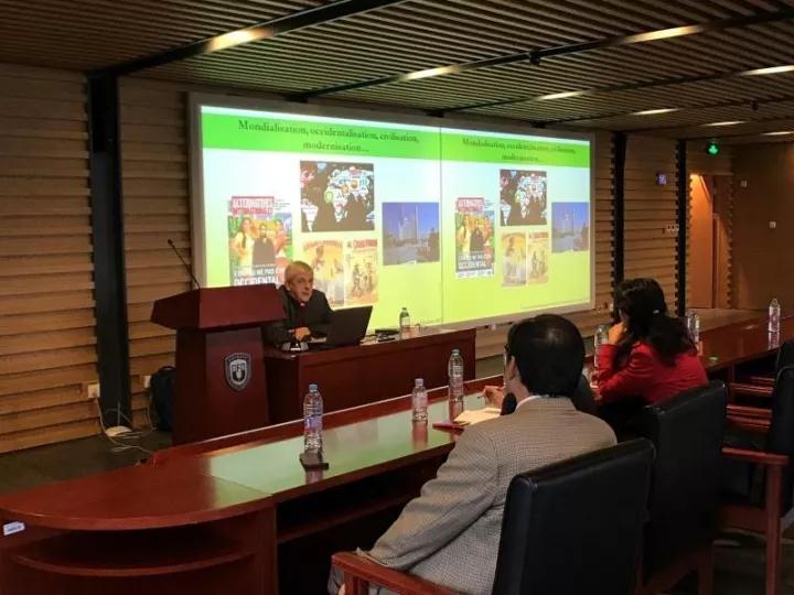2017年10月11日下午,前法国资深外交官、著名国际问题和中国问题专家魏柳南(Lionel Vairon) 先生应法语国家与地区研究中心和法国研究中心的邀请,在北京外国语大学图书馆四层学术报告厅做了题为“全球化是不是西方化?”(Mondialisation ou occidentalisation du monde ?)的主题讲座。讲座由北外亿阳讲席教授丁一凡主持。