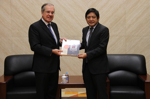 演讲开始前,彭龙校长会见了顾山大使一行,双方就我校与法国高校之间的交流合作等问题进行了深入交流。法国使馆文化教育合作处副参赞路索先生(Fabrice Rousseau)、使馆办公室主任杜建达先生(Tristan Dufès)、丁一凡教授、我校国际处处长柯静、法语系主任车琳、法语系党总支书记兼副主任戴冬梅和副主任王鲲等一同参加了会见。
