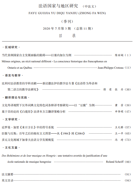 点击附件下载查看本刊稿约及体例:《法语国家与地区研究》体例与格式.zip
