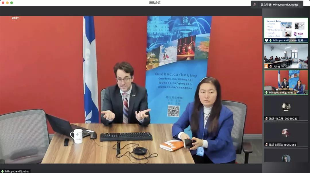 魁北克研究中心主任吉晶老师主持,魁北克驻京办文化专员张毅平女士出席本次讲座。