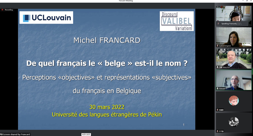 2022年3月30日,比利时鲁汶天主教大学教授、《小罗贝尔》词典的编撰者、比利时著名语言学家米歇尔·弗兰卡尔(Michel Francard)先生通过线上会议,做了一场题为《法语在比利时:一份语言遗产》( Le français en Belgique, un patrimoine linguistique )的精彩讲座。本次活动由足球比分
