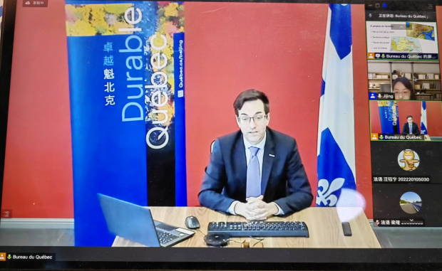 随后,Czor先生介绍了魁北克的绿色经济。魁北克拥有领先的清洁技术(technologies propres),包括水资源管理、垃圾处理、可再生能源利用以及能效提高等等。在绿色经济发展方面,魁北克取得了令人瞩目的实绩:温室气体排放北美最低、可再生能源生产北美第一,且在碳交易和国际合作等也有积极行动。加拿大优越的商业环境吸引了大量清洁技术企业入驻,在魁北克,绿色经济创造了大量就业和丰厚营收。政府的积极投入、知名大学相关研究机构的设立、企业的持续研发……这些都使得魁北克成为全球低碳经济和环境保护的有力推动者。