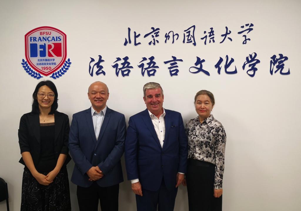 的历史概况、教学规模与成果、学生交换项目、教育文化合作等方面进行了友好交流。随后,Alain Sans Cartier (阿兰·卡尔)先生一行参观了魁北克研究藏书及北京外国语大学图书馆的法语藏书。双方表达了对疫情后恢复和扩大教育文化交流活动的期待。