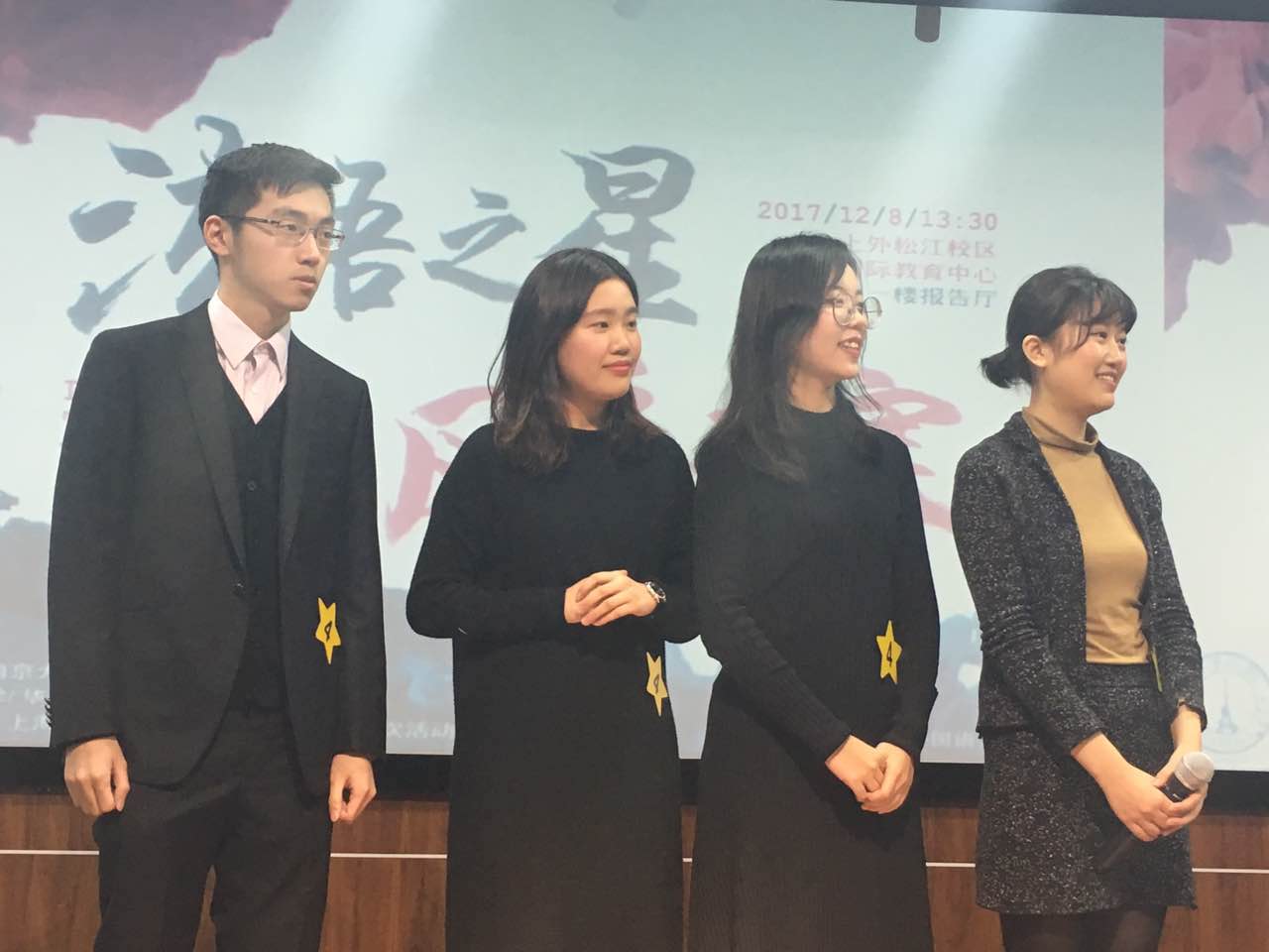 12月8日下午,上海外国语大学举办的第九届“法语之星”风采大赛在上外松江校区举行。经过一个下午的激烈角逐,我系2014级本科生鲜杨、何润哲、罗婉匀和沈逸舟4名同学组成的代表队在演讲环节与文化知识问答环节中均取得第一名的佳绩,荣获“演讲之星”一等奖和“文化之星”奖。