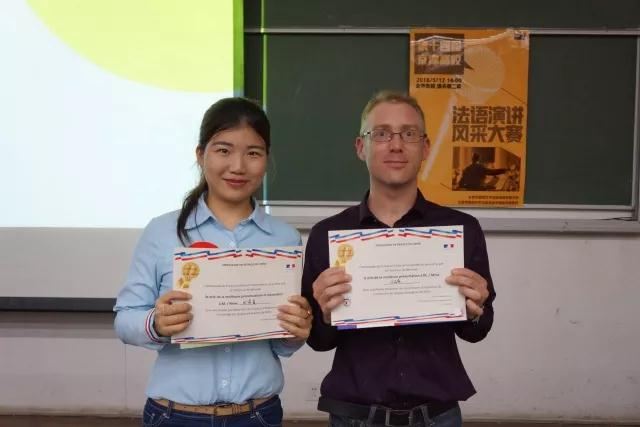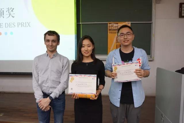 稍事休息后迎来了第二环节——即兴演讲。第二环节的题目均为法语谚语,抽取题目半分钟后,选手们将就此谚语发表演讲。这一环节更加考验选手们的理解能力和临场表达能力,对选手们的知识深度广度和法语综合能力是个不小的挑战。我校的两位同学凭着扎实的法语基本功,对题目透彻的理解,严密理性的思考和自信的风采,赢得了评委们的好评。