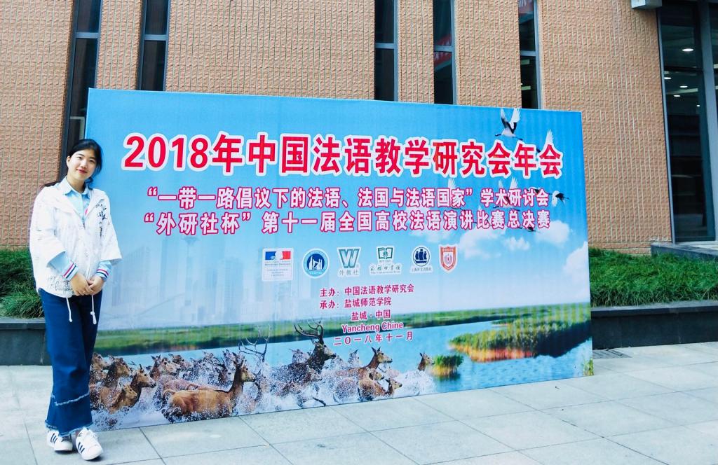 2018年11月3日上午,由教育部外指委法语分委员会、中国法语教学研究会主办、盐城师范学院承办的“外研社杯”第十一届全国高校法语演讲比赛全国总决赛中,我校法语系2015级学生田晶鑫凭借扎实的语言功底、宽阔的知识面和出色的临场应变能力,荣获本次比赛一等奖。