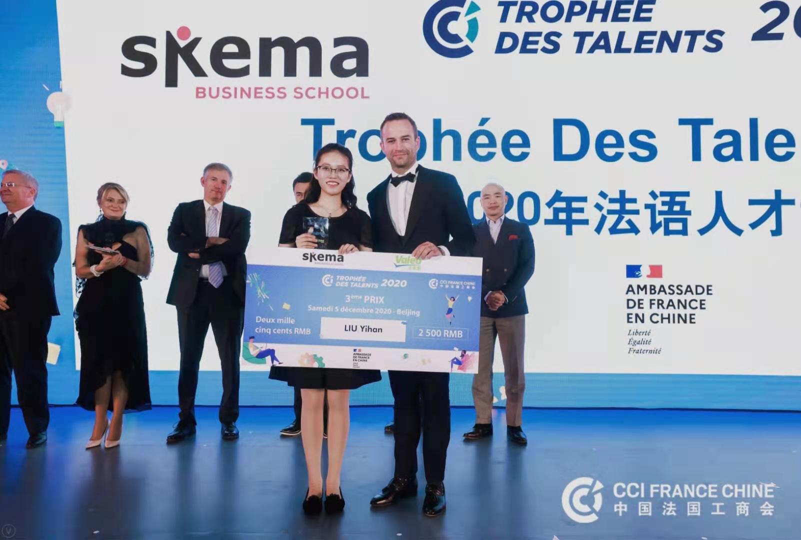 2020年12月5日,由法国工商会创办,法国大使馆、法国SKEMA商学院和法雷奥集团(Valeo)共同举办的第八届中国法语人才竞赛(Trophée des talents 2020)决赛于北京圆满落幕,足球比分 本科2017级刘逸涵同学荣获季军。