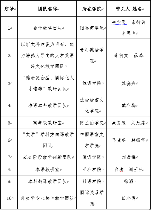 2020年北京外国语大学优秀基层教学团队评审结果公示