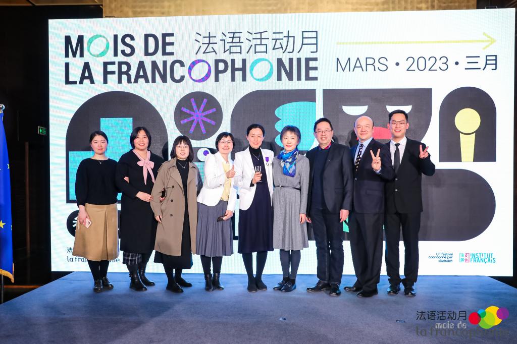 今天大家在此欢聚,共庆国际法语日。在今晚获颁法兰西共和国学术棕榈骑士勋章,我感到非常荣幸。让我倍感高兴的是,今年3月举行第27届法语活动月,也恰好是我1996年3月正式开启的法语教师生涯满27周年的日子。