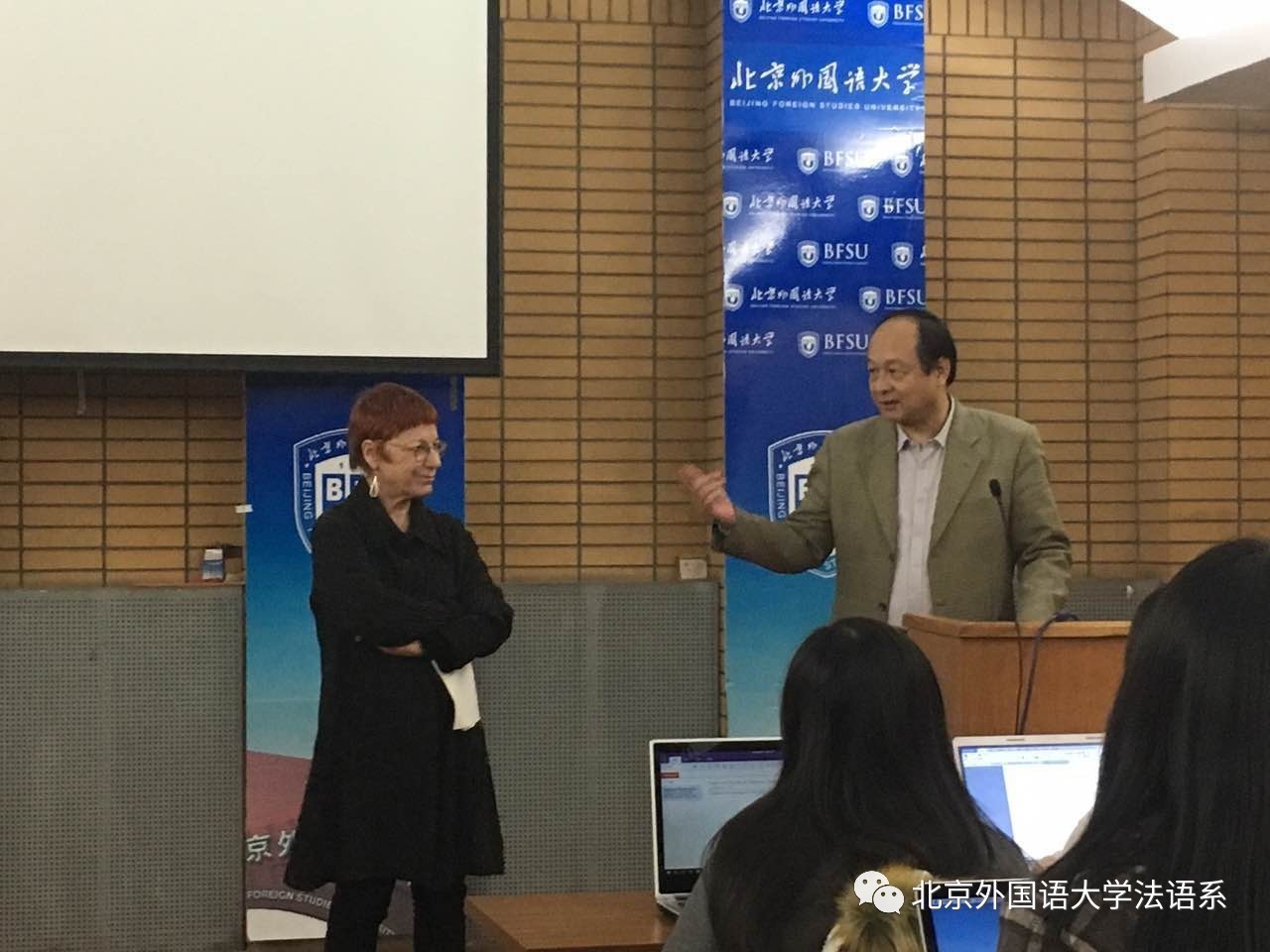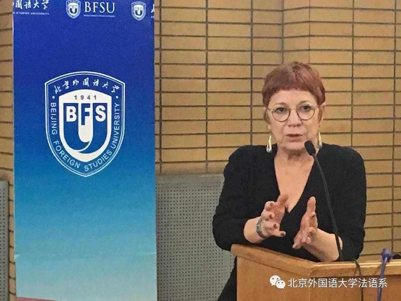 2016年12月2日周五下午两点,《外交世界报》 (Le Monde diplomatique) 副总编布拉尔女士(Martine Bulard)应邀在北京外国语大学东院逸夫楼大会议室做了题为《特朗普当选美国总统对欧洲的影响》(Impacts de l’élection de Trump sur l’Europe)的讲座。《外交世界报》是法国左派报纸《世界报》(Le Monde)旗下的重要报刊之一,在外交研究领域有巨大影响力。本次讲座由北外亿阳讲席教授、法语国家与地区研究中心主任丁一凡教授主持,来自北京高校法语系师生近80人参加了本次讲座。