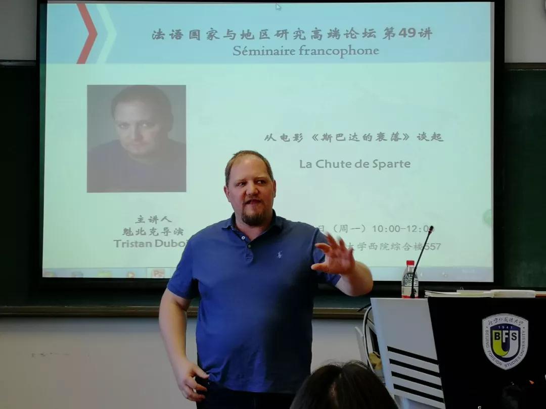之邀,魁北克著名导演特里斯坦·杜布瓦(Tristan Dubois)先生于2019年3月11日上午在北外西院综合楼557教室举办了名为“从电影《斯巴达的衰落》谈起”的讲座。本次讲座由魁北克研究中心主任李洪峰教授主持。
