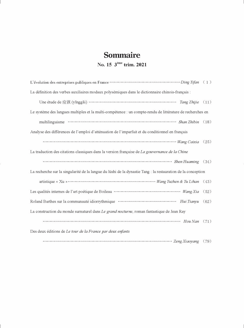 《法语国家与地区研究》2021年第3期 目录与摘要