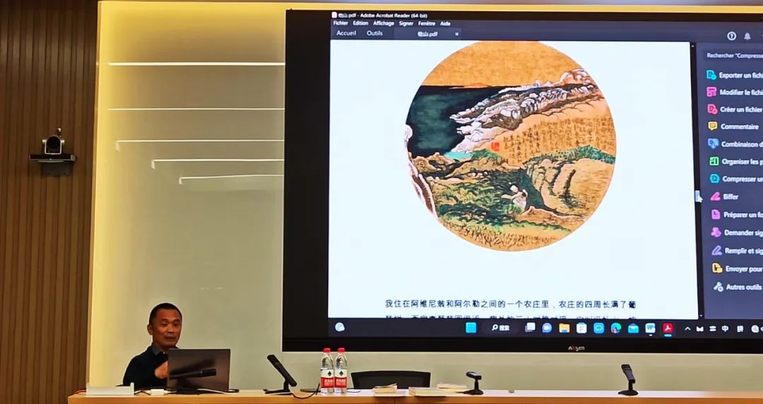 季先生首先讲述了其丰富的个人经历:10岁即表达出成为画家的志向,11岁开始在北京外国语大学附属外国语学校学习法语,1990年北外法语系毕业后,从事导游、展会、翻译等自由职业,并在业余时间坚持画画。2005年,季先生到欧洲进行了为期67天的徒步写生,从旁观者的角度深度体验了“圣雅克之路”,出版了《一个中国艺术家的朝圣之路》水墨速写集。该画集在法国广受好评。季先生随后又应邀前往普罗旺斯专注绘画创作,出版了《一个中国画家的普罗旺斯》大型画册。“由于季风,普罗旺斯每年有超过三百天的时间都是万里晴空,阳光强烈。”就是在这万里晴空的普罗旺斯,季先生在绘画中倾洒其对自由的追求。