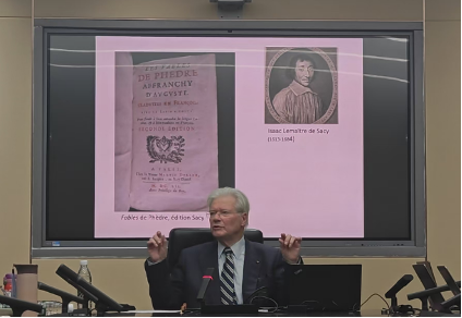 11月13日下午,索邦大学文学院荣休教授、加拿大皇家学会(艺术、文学、人文社科学院)成员、拉封丹之友学会主席、法国17世纪文学专家帕特里克·丹德雷(Patrick Dandrey)先生受邀来我校演讲,题为“寓言的历史­——从西方古代至拉封丹”。讲座由何吉光老师主持。