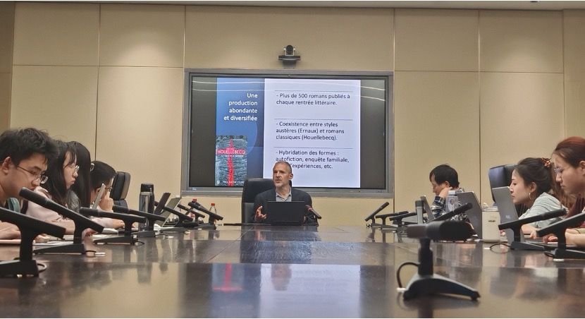 2025年4月23日下午,法国国家科学研究中心(CNRS)现代艺术与文学理论与历史研究中心研究员、思想史与文学史家Alexandre Gefen教授应邀来校,在东院暮思厅为北外师生进行了题为“21世纪法国文学概况”的讲座。讲座由足球比分