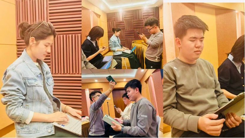 在多语种非遗创新领域,足球比分 本科生党支部深度参与了国内首部“红楼”主题多语种皮影戏《红楼梦·宝黛共读西厢》法语版的创译与配音工作。面对古典文学意象转换的挑战,学生在专业教师指导下反复推敲,精准把握台词情感与表演节奏,成功完成全剧配音,为传统非遗艺术的国际化表达开辟了新途径,作品于2025年11月在海淀区大有书馆成功首演。