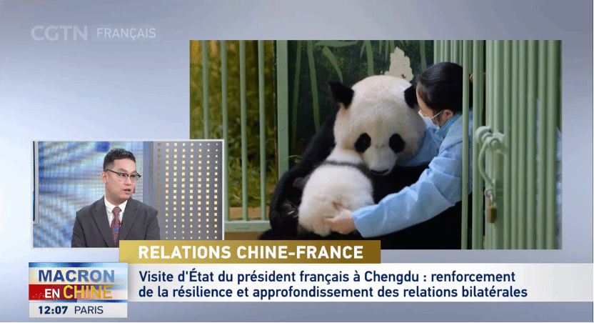 学者王凝受邀参与中国国际电视台(CGTN)法语频道直播访谈,围绕马克龙总统的成都行程、大熊猫保护合作续签、旅法归国大熊猫探访、中法文化教育领域人文交流实践及第二届中法教育发展论坛的现实意义与长远价值,进行解读与阐释。